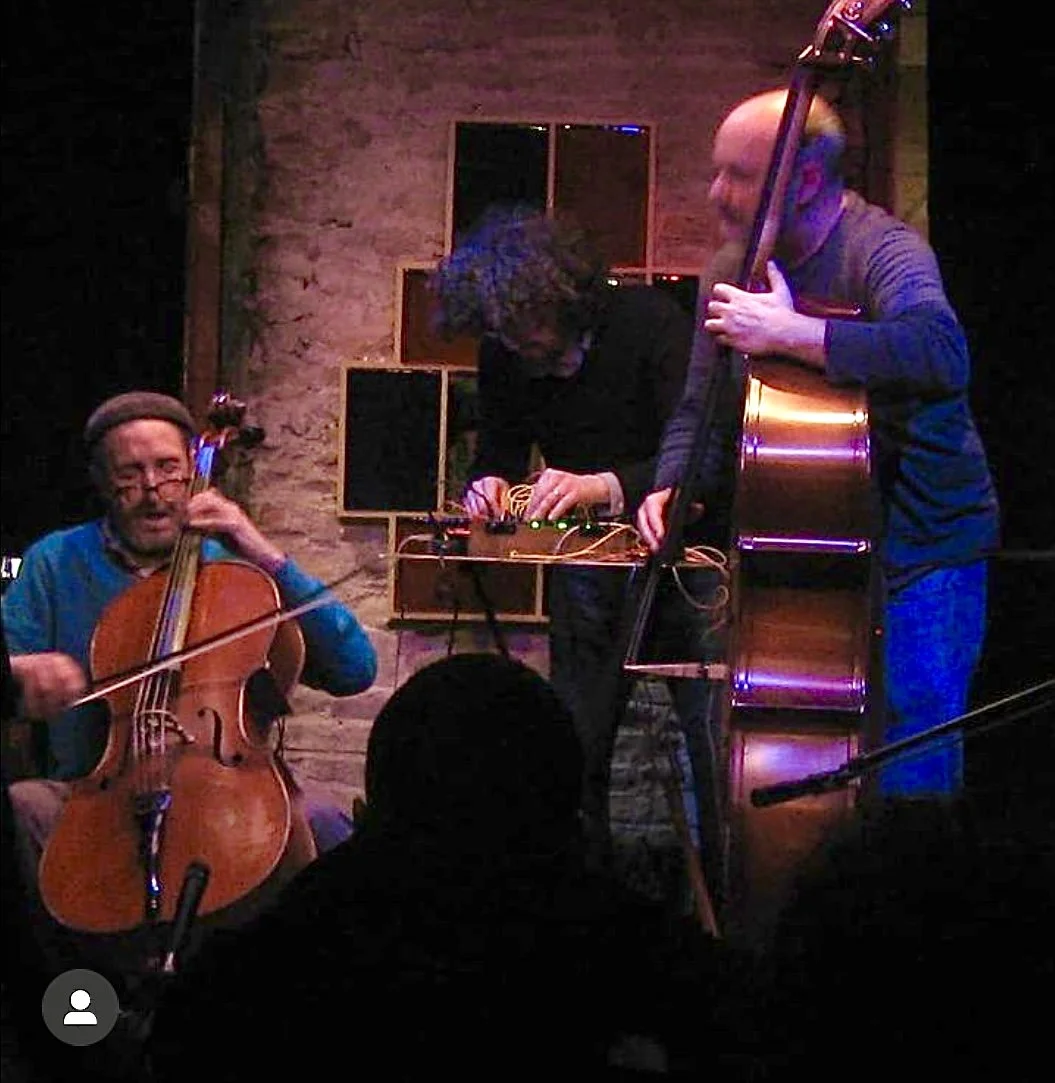 Claude & Ola (not pictured) improvising with free jazzers Tristan Honsinger and Nicolas Caloia at Pouring Light Studios. Malone, NY.